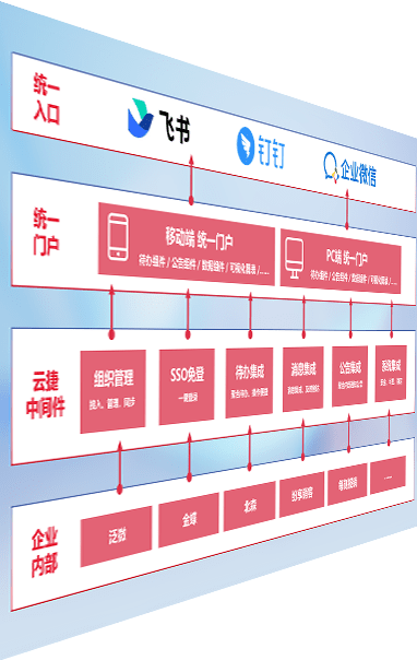对协作平台提供支持服务,,,支持企业应用与协作平台对接,,,包含组织同步、、、、消息集成、、、、待办集成等。。。支持目前主流的协作平台:钉钉、、、、企微和飞书。。。。
